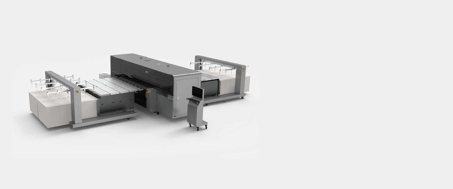 全新紡織印花導(dǎo)帶直噴機最高產(chǎn)能:1786㎡/hr 滿配64個工業(yè)級噴頭